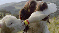 這只小狗正在幫助主人喂養(yǎng)小羊羔。